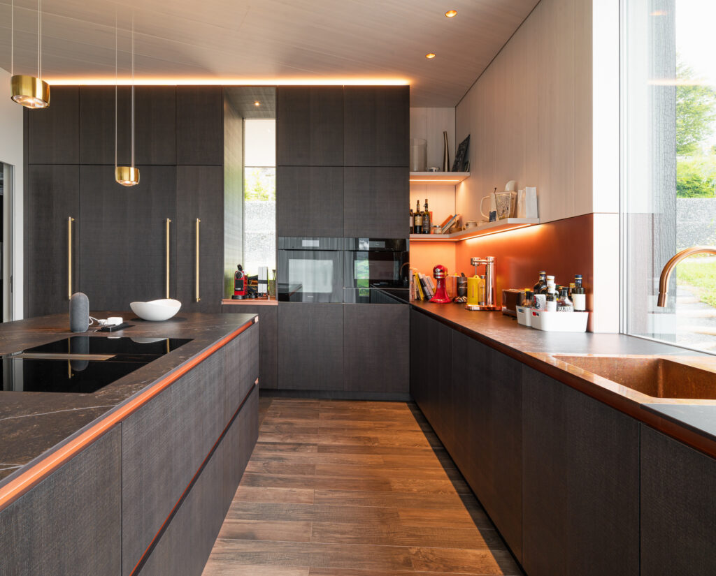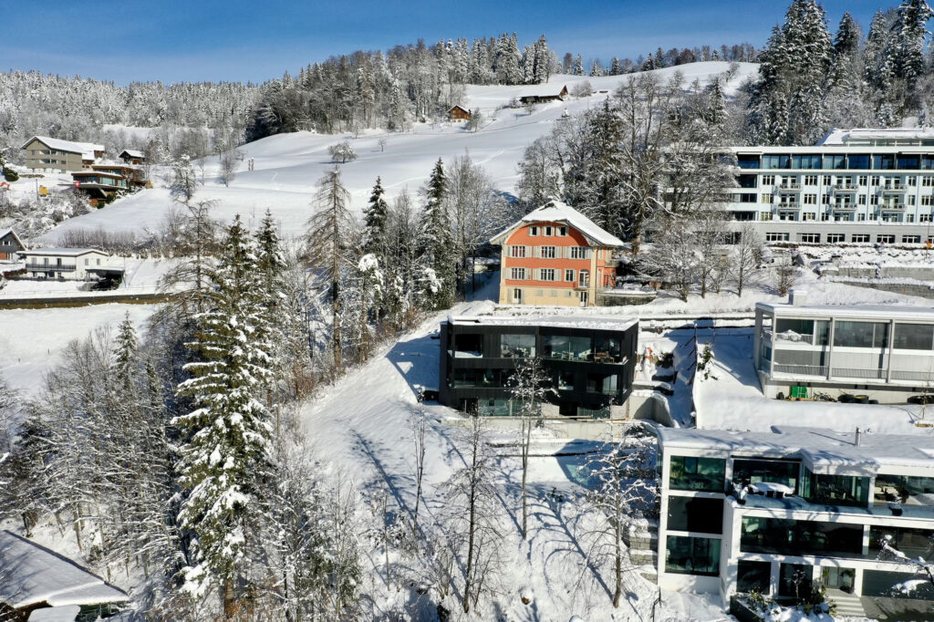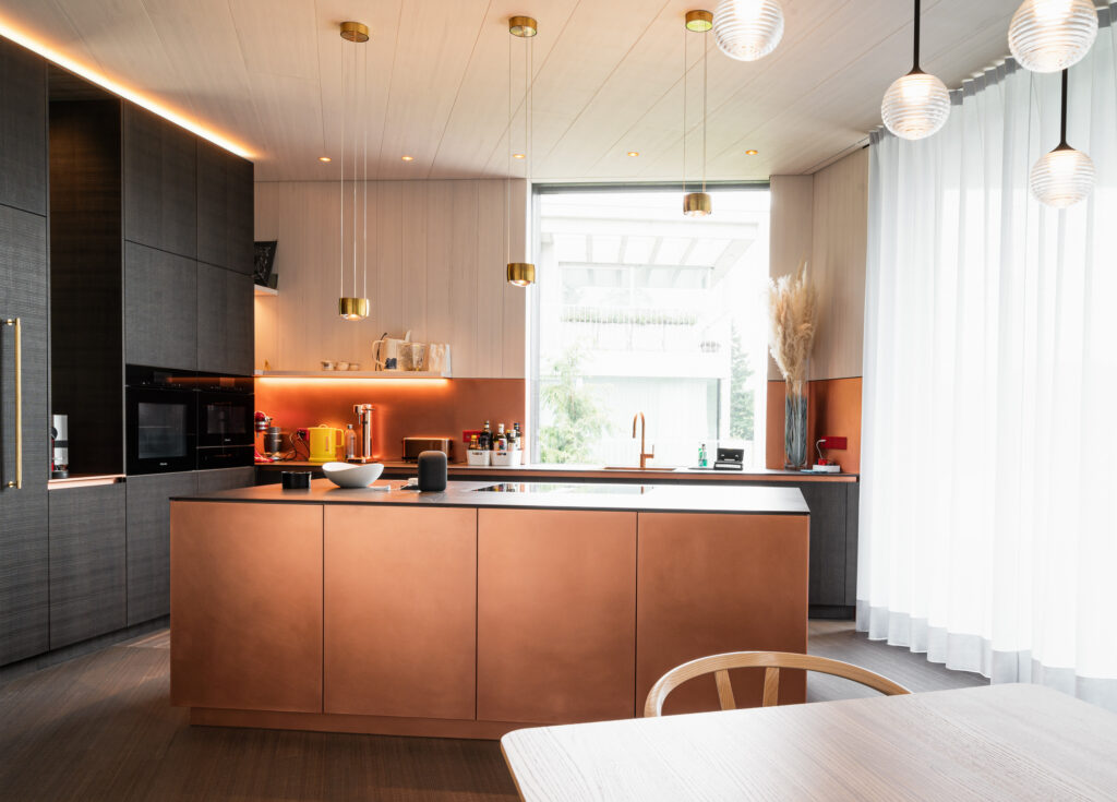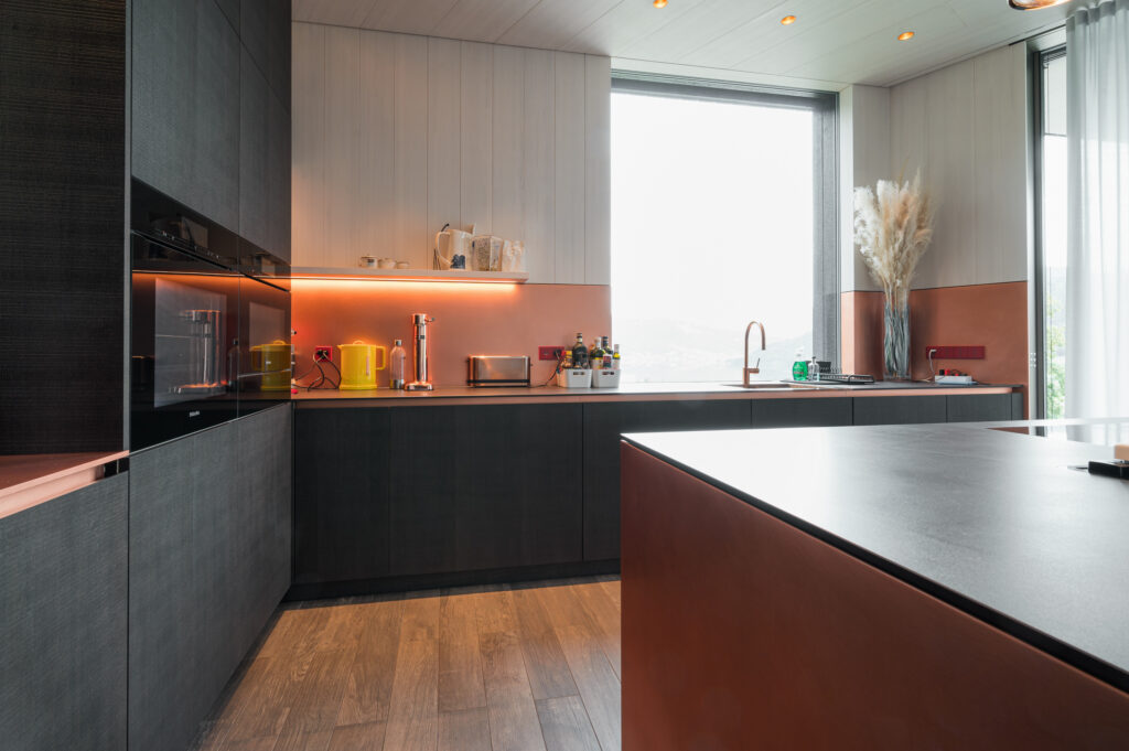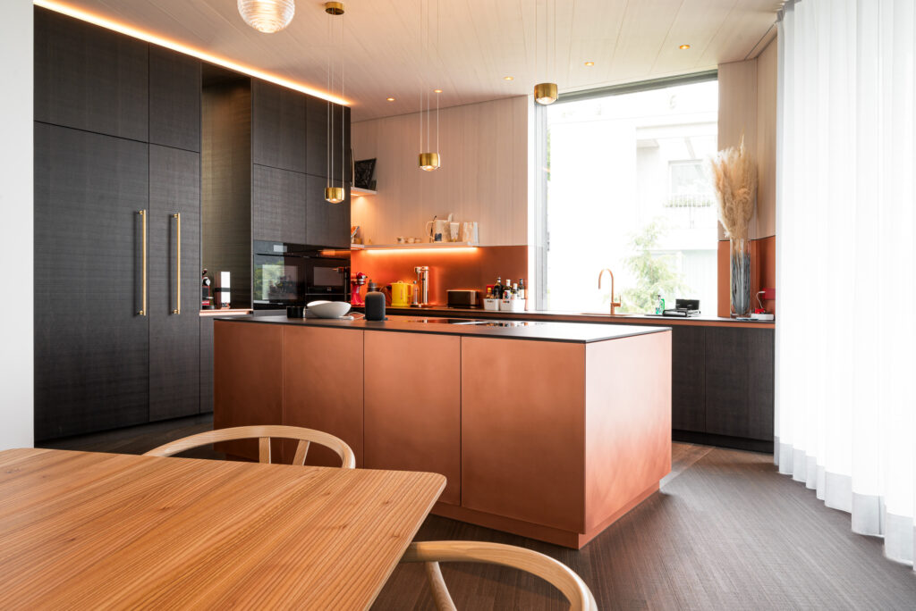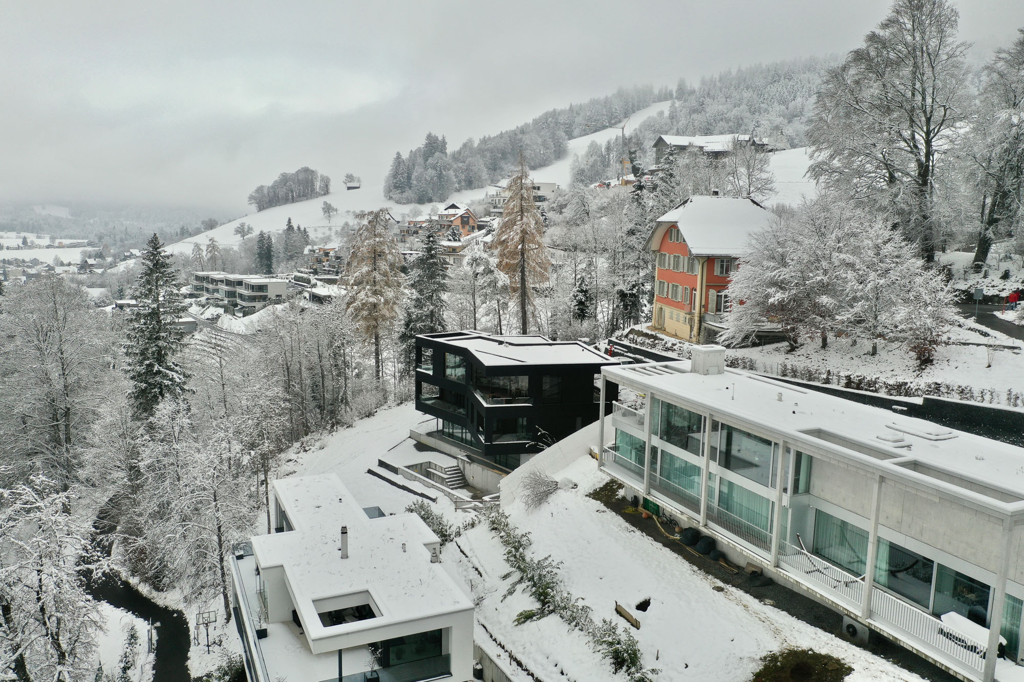 A large family villa for Kinth partner Alkis Tzavaras was built in an idyllic setting in canton Zug, using the latest environmental and sustainability standards and techniques. Achieving Minergie P standard and operating as a passive house, the building is prefabricated timber clad in a distinct charred accoya. Ground source heat pumps, large solar arrays and batteries, and water retention give the ability to be fully self sustaining.
